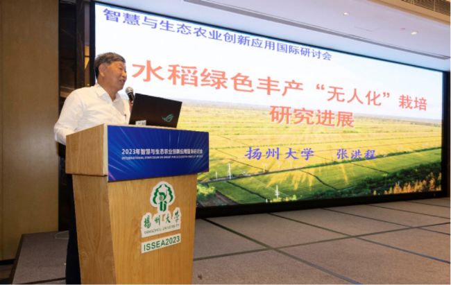 中國工程院院士張洪程教授做了題為《水稻綠色豐產“無人化”栽培研究進展》的特邀報告。