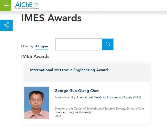 大會現場,國際代謝工程學會(IMES)向清華大學生命科學學院教授、合成與系統生物學中心主任陳國強頒發了2023年度國際代謝工程獎(IMES Award)。