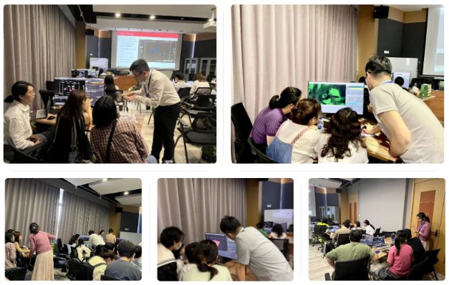 第一天的課程由臨港實驗室研究員殷憲振開場介紹了實驗室工作,殷老師多年來圖像分析的經驗與想法引起了與會者的共鳴;隨后,徠卡客戶成功專家南希分享了AI 賦能的徠卡硬件系統,包括Matel TL和激光顯微切割及AI 自主共聚焦顯微鏡并介紹了Aivia 培訓會的安排計劃等內容;接下來,徠卡應用團隊按照日程逐一詳細講解了Aivia AI 圖像分析軟件中的功能。