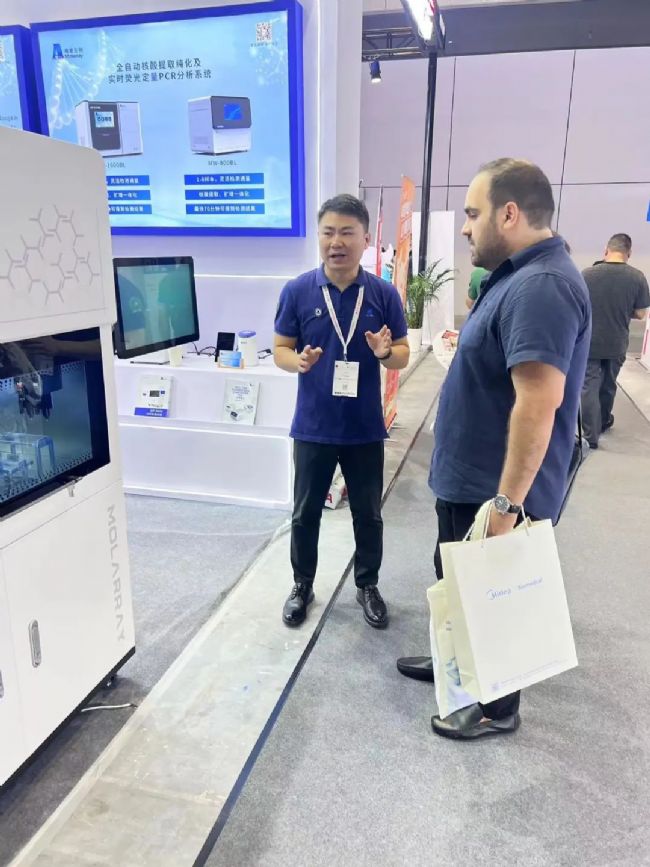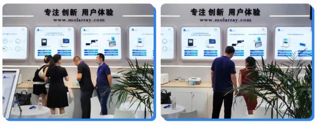 MW-1600BL全自動核酸提取純化及實時熒光PCR分析系統(tǒng)一經(jīng)亮相,吸引了現(xiàn)場參展者的圍觀,它將核酸檢測的各步驟整合在一套自動化流程中,真正做到樣本進,結(jié)果出。靈活的樣本數(shù)量選擇,避免了耗材、試劑的浪費,特別適合隨到隨檢的應用場景。