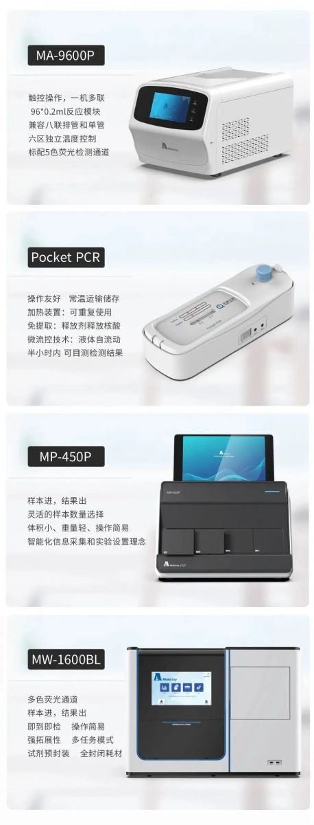 MA-688型實時熒光定量PCR儀48*0.2ml反應模塊,兼容八聯(lián)排管和單管,四路獨立溫控和智能控溫技術,標配4色熒光檢測通道,滿足大部分檢測需求,外接電腦,可連接LIMS/LIS系統(tǒng)。