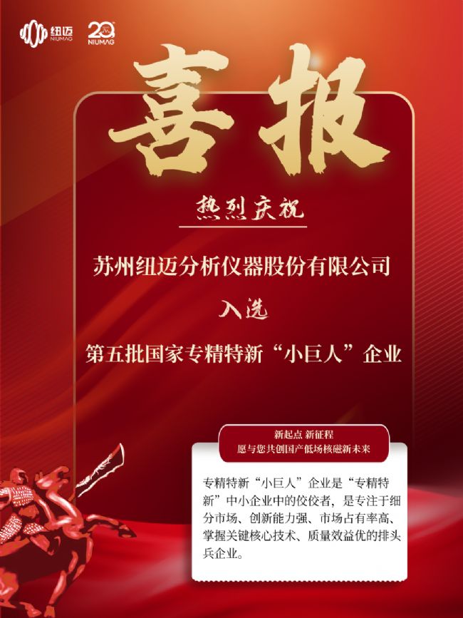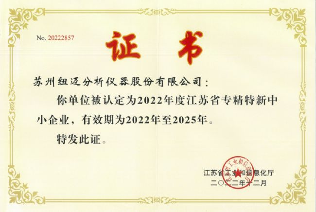 此次能夠入選第五批國家專精特新“小巨人”企業,意味著紐邁分析自主研發創新及綜合競爭實力得到了認可。值得一提的是,2022年度,紐邁分析也成功入選了江蘇省“專精特新”企業;