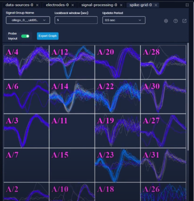 Allego采集軟件可以實時監測您的電極噪音,信號強度,信噪比,放電頻率信息并直觀地展示給您。