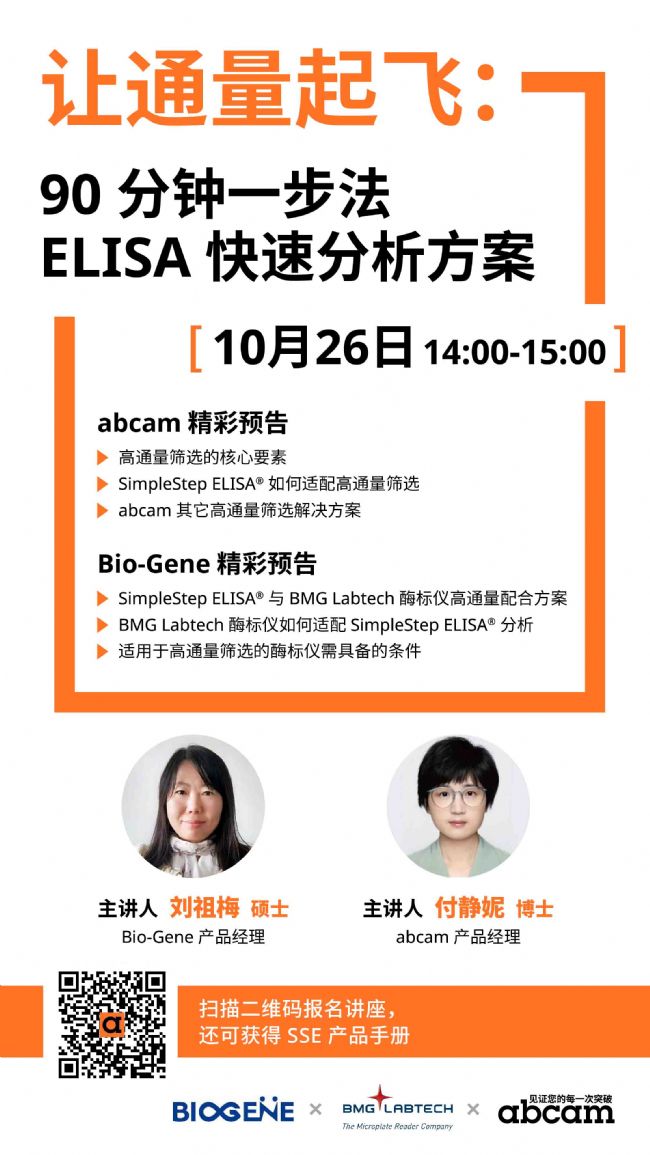 abcam聯(lián)合Bio-Gene推出《讓通量起飛:90分鐘一步法ELISA快速分析方案》為您分享最新均相反應(yīng)ELISA方法SimpleStep ELISA®。