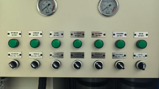當?shù)谝患壏礉B透產(chǎn)水系統(tǒng)出現(xiàn)機械故障時,可以轉(zhuǎn)換該環(huán)節(jié)中的手動轉(zhuǎn)換閥,獨立運行二級反滲透系統(tǒng)產(chǎn)水;