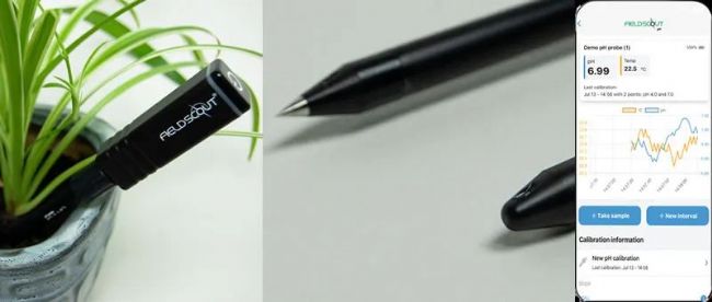 美國Spectrum公司近期發布的新一代FieldScout系列pH計,使用ISFET非玻璃離子選擇場效應晶體管電極,通過移動設備藍牙連接探針可以無線測量托盤、營養缽、容器中的樣品,包括溶液、土壤和無土介質中的PH值和溫度。