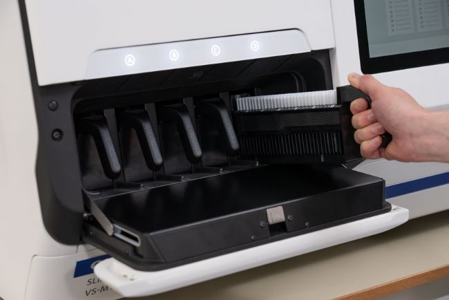 全玻片掃描系統SLIDEVIEW VS-M1R集超高畫質、快速掃描和簡便易用等多重優勢于一身,是一種完善的數字病理學解決方案。可以快速提供高質量的玻片圖像,有助于病理學家迅速有效地做出分析結果。