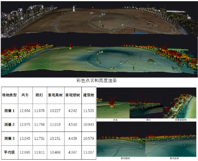 同步采集的三維激光雷達(dá)點(diǎn)云數(shù)據(jù)及高分辨率RGB影像,很好地可視化展示了地表的三維信息,并且還可測量得不同目標(biāo)的厘米級高度信息并做統(tǒng)計(jì)。