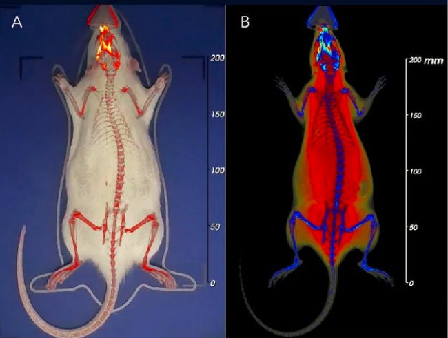 大鼠活體成像,骨密度增強彩色融合顯示