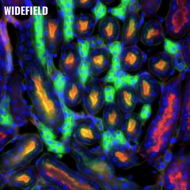 近日國內(nèi)首發(fā)ECHO 共聚焦可阻擋離焦光,提供比傳統(tǒng)寬場(chǎng)顯微鏡更高分辨率的圖像。共聚焦為最小的樣品帶來更好的清晰度,并能夠?qū)^厚的樣品進(jìn)行成像。該系統(tǒng)還減少了光漂白,適合活細(xì)胞應(yīng)用。