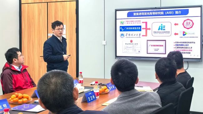 隨后,AIE研究院研發副院長劉勇介紹研究院的基本情況:AIE研究院是由廣州市科學技術局、廣州高新技術產業開發區管理委員會和華南理工大學共同支持建設的新型研發機構。研究院主要圍繞聚集誘導發光(AIE)在生命健康、環境保護、公共安全和能源利用等領域的應用展開產業轉化研究工作。AIE高等研究院聘任“AIE概念”提出者唐本忠院士為創院院長。AIE材料具有高發光效率、高發光穩定性及光色可調等特點,在分子影像等方面具有顯著優勢和巨大的應用價值。