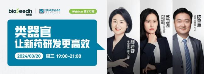由此可以發現,類器官技術與AI、器官芯片的有機融合,正在為加速新藥研發創造新的勢能;诖,2024年3月20日 19:00-21:10,bioSeedin將聯合Molecular Devices共同主辦Webinar第177期——類器官讓新藥研發更高效,本次直播邀請到了武漢睿健研發總監顏若蓉、Molecular Devices產品經理蘇園園、江蘇艾瑋得 CTO陳早早分別為我們帶來主題為“類器官模型的研究及應用”、“AI驅動的類器官全自動培養方案”、“器官芯片的技術發展及新型器官芯片應用于藥物研發及藥物評價”,敬請期待。