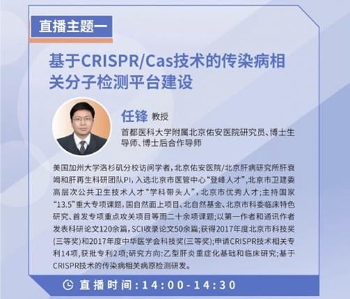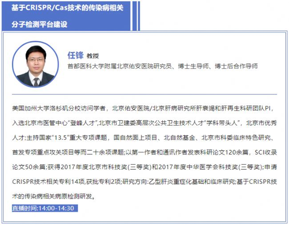 首都醫(yī)科大學(xué)附屬北京佑安醫(yī)院任鋒教授/研究員、博士生導(dǎo)師分享基于CRISPR/Cas技術(shù)的傳染病相關(guān)分子檢測平臺建設(shè)研究成果;