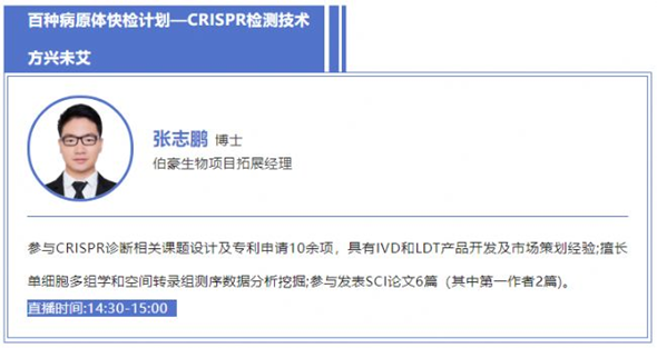伯豪生物項目拓展經(jīng)理張志鵬博士分享百種病原體快檢計劃——CRISPR檢測技術(shù)與應(yīng)用。”