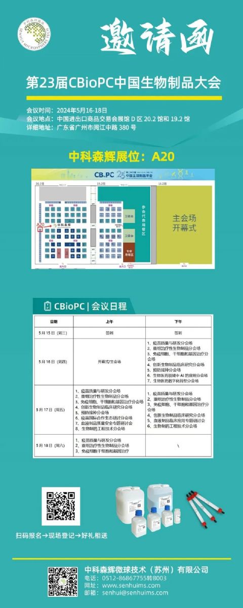 中科森輝微球技術(蘇州)有限公司作為生物制品分離純化層析介質專業供應商之一,憑借自主知識產權的產業化技術開發及生產出不同品種、不同系列的層析介質,公司將攜主打層析介質產品以及生物制品分離純化整體解決方案受邀參加此次大會,歡迎大家蒞臨中科森輝展位A20交流、共話行業發展。