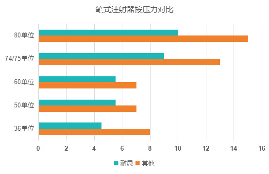 一次性使用筆式注射器按壓力:36/37單位<5N,74/80單位<8N。