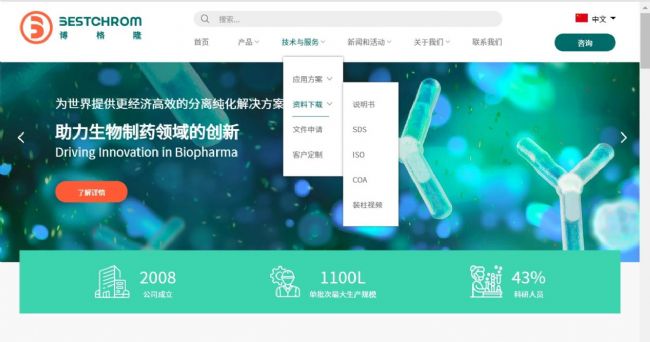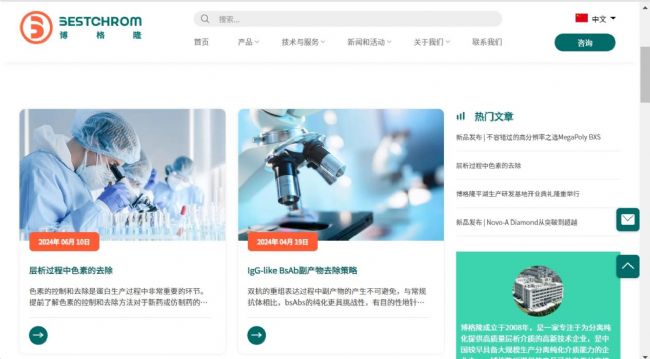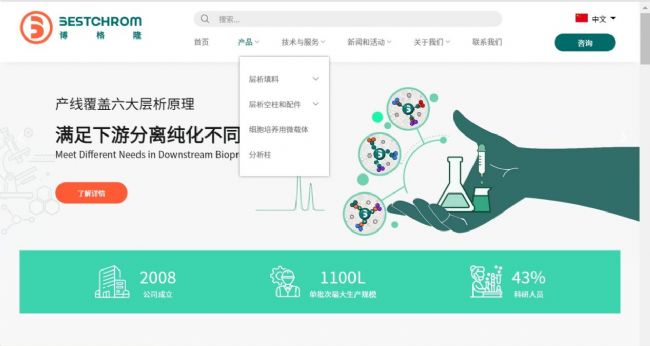 我們對(duì)菜單欄進(jìn)行了系統(tǒng)優(yōu)化,讓博格隆的主營(yíng)產(chǎn)品更加直觀地展現(xiàn)在您眼前。從層析填料、層析空柱及配件,到細(xì)胞培養(yǎng)用微載體,再到分析柱,所有產(chǎn)品分類(lèi)清晰,便于您快速進(jìn)行瀏覽和選擇。