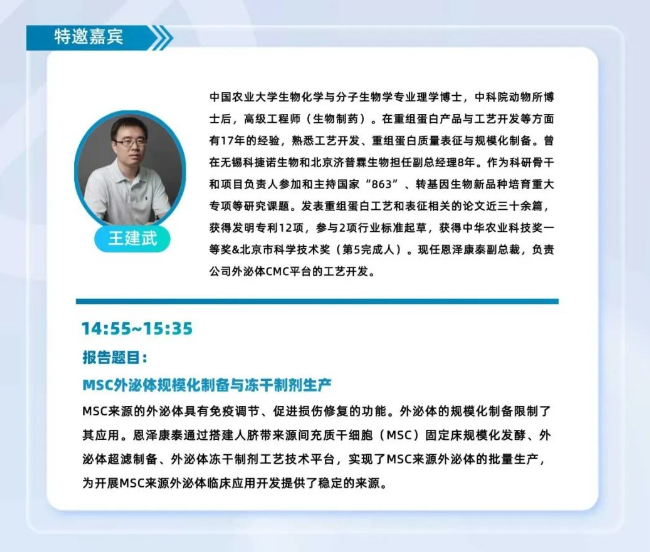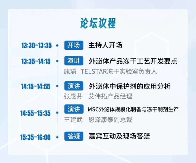 本屆論壇以外泌體為核心,邀請企業一線技術人員與行業內資深專家,圍繞工程化外泌體的前沿應用、制劑開發、工藝優化、質量控制、政策解讀等各個環節,探討工程化外泌體從研發到產業化過程中的難點痛點,分享切實可行的經驗或解決方案,推進外泌體行業發展。