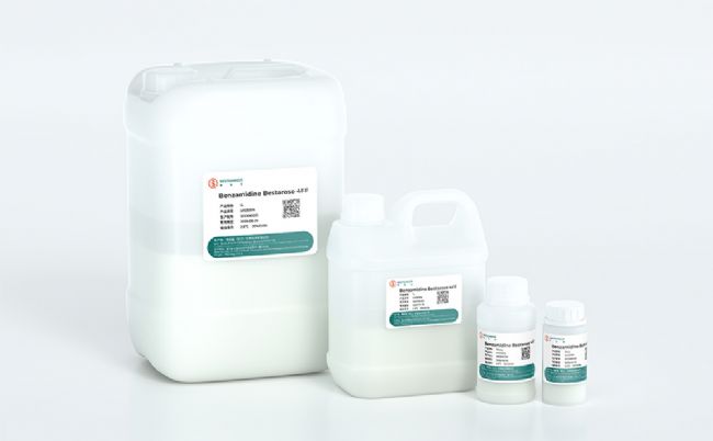 Benzamidine Bestarose 4FF是將對氨基苯甲脒偶聯到瓊脂糖凝膠Bestarose 4FF上而制成一種親和層析介質,可用于絲氨酸蛋白酶(如胰蛋白酶、凝血酶、尿激酶、激肽釋放酶、前激肽釋放酶等)的分離純化,或者從生物樣品中去除絲氨酸蛋白酶。可用于GST標簽蛋白酶切后酶的去除。