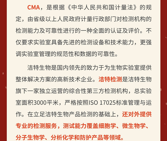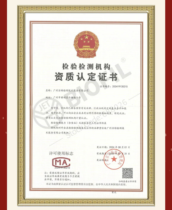 潔特成功獲得檢驗檢測機構資質(CMA)認定證書