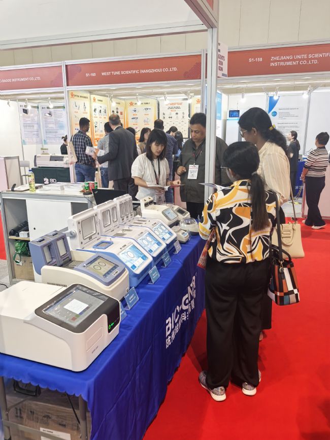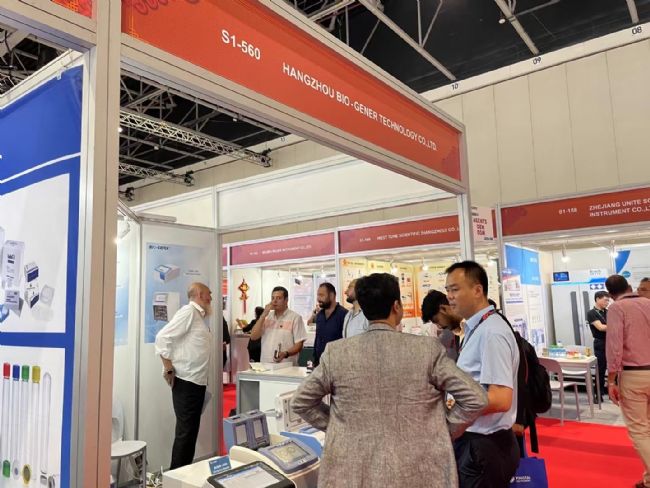 展位現場,柏恒科技PCR儀等生命科學儀器整齊擺放,吸引了眾多參觀者的目光。