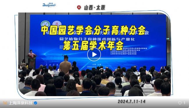 2024年7月14日-16日,由中國園藝學會分子育種分會主辦,山西農業大學承辦的中國園藝學會分子育種分會第五屆學術年會在山西太原隆重召開。上海澤泉科技股份有限公司應邀參會并展示前沿技術與產品。