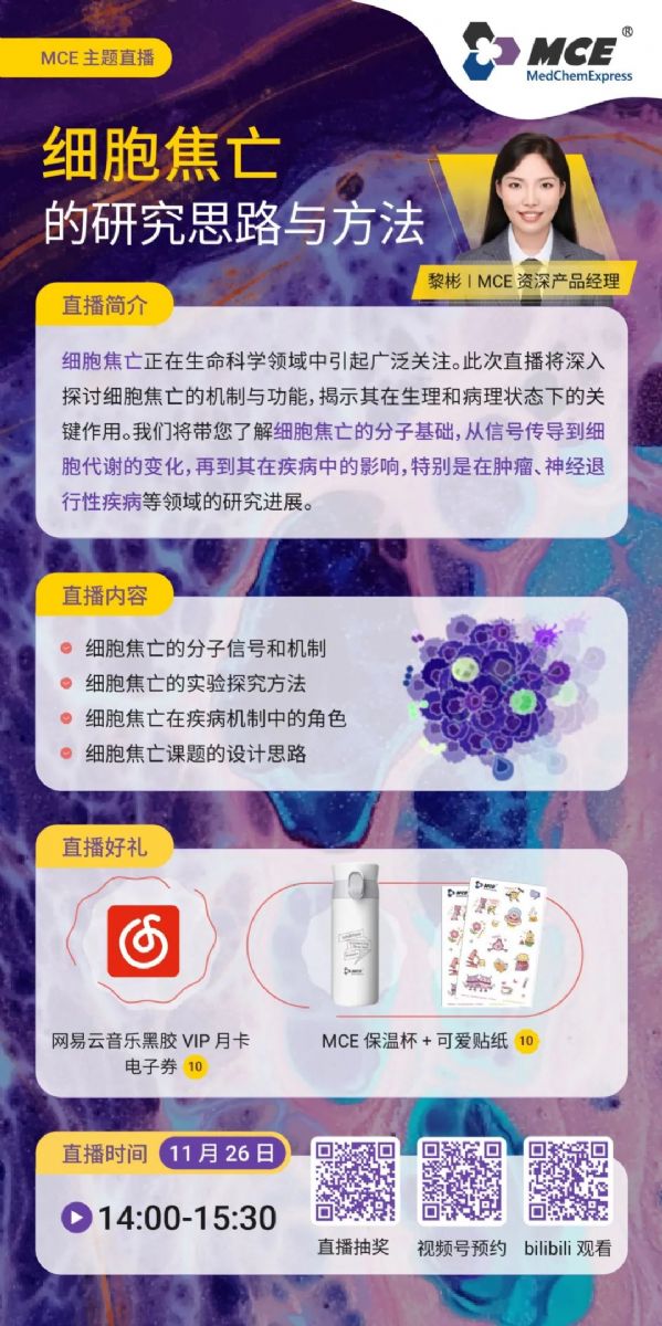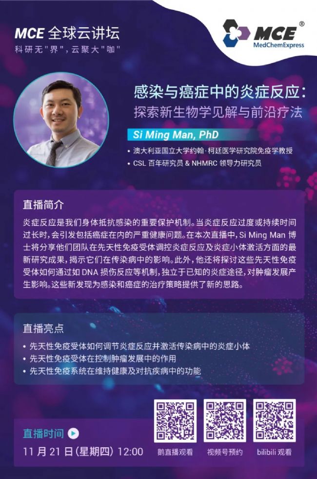 MCE 全球云講壇系列,即 MCE Webinar 系列,是 MCE (MedChemExpress) 傾力推出的高端在線講座與研討會旗艦欄目。此欄目匯聚來自全球各地的頂尖科研精英,將特別邀請眾多在國際上享有崇高聲譽的海外權威專家作為主講嘉賓。這些卓越的科學家們將共同分享他們最新的科研成果,深入探討當前最前沿的科研趨勢,旨在攜手全球科研同仁,共同驅動新藥研發的蓬勃發展,不斷開創科研創新的新篇章。