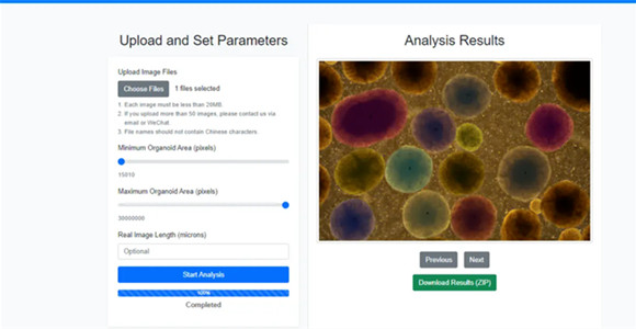 可在離線狀態(tài)下免費使用的類器官AI大模型分析軟件以來,基于其強大的數(shù)據(jù)處理功能,不少客戶表示大大提升了類器官照片分析效率。但是由于該AI軟件對電腦的GPU有一定要求且有客戶提出外出時手邊缺少電腦,或是臨時配備的辦公電腦的顯卡配置不足等環(huán)境下仍舊希望能夠使用此系統(tǒng)。為了提高用戶使用AI技術(shù)進行類器官分析的便利性,我們又開發(fā)了類器官AI分析在線網(wǎng)站,旨在提高類器官研究的效率和準(zhǔn)確性,推動生命科學(xué)的創(chuàng)新與應(yīng)用。