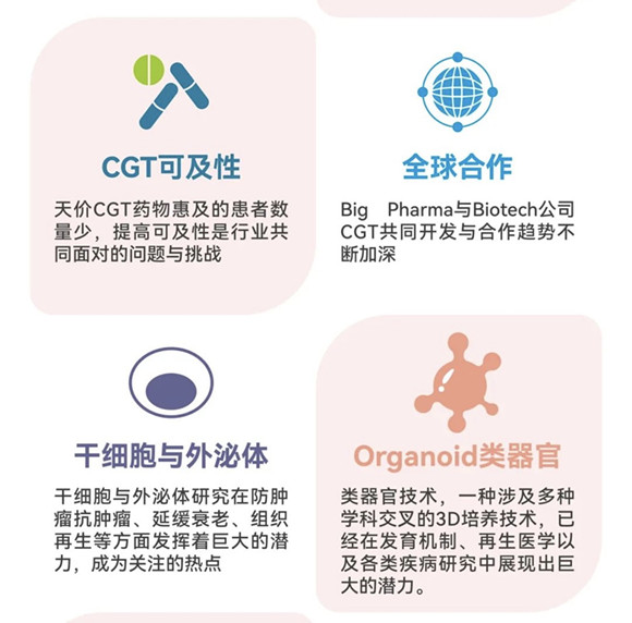 CGT領域不斷迎來重大進展,自2017年以后,里程碑式產品如CAR-T、AAV基因治療、mRNA等接連獲批,近期更是見證了全球首款上市CRISPR基因編輯療法Casgevy橫空出世;首款DMD基因療法Elevidys為患者提供更多元的治療選擇;TIL療法Amtagvi里程碑式獲批標志著細胞療法進入實體瘤時代;全球首款TCR-T細胞療法TECELRA獲批上市等標志性事件。然而CGT行業依然面臨著可及性、安全性、資本寒冬、行業內卷等挑戰。