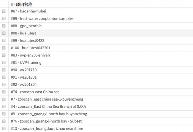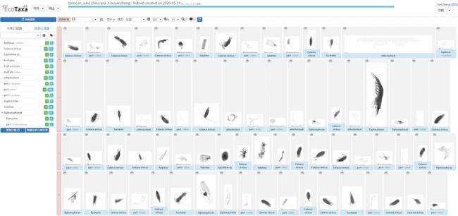 將使用ZooSCAN處理得到的浮游生物小圖及其形態學信息文件導入到EcoTaxa網站后,可以選擇網站上已有的或自己新創建的數據庫快速對小圖中的浮游生物種類進行自動鑒定、分類、統計,得到該批浮游生物具體的分類統計結果。之后,將分類結果從EcoTaxa中導出,可進行后續的數據統計、分析。