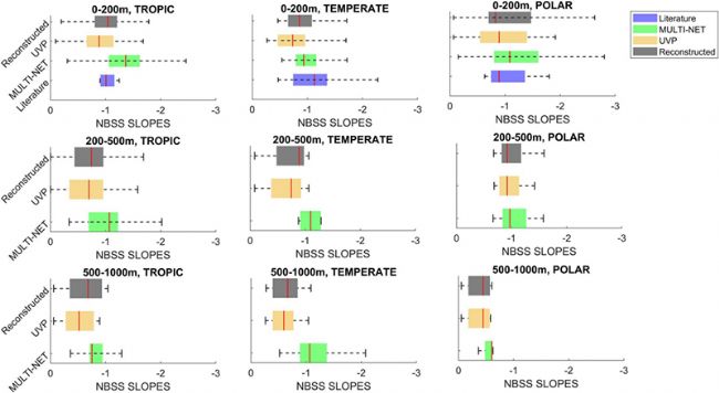 研究團隊將上述兩種實驗方法的研究數據進行整合,用于重建中大型浮游動物的NBSS,并比較了兩種實驗方法在計算NBSS斜率和生物量上的差異。