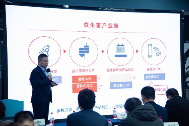 微康益生菌董事長方曙光帶來“益生菌菌種從實驗室到千噸產能規模化生物制造之路”報告,提到“人工智能與生物信息學整合到益生菌菌種研究可增強微生物組分析、加速益生菌菌種高效篩選;加快發酵過程工藝優化及產業化“。