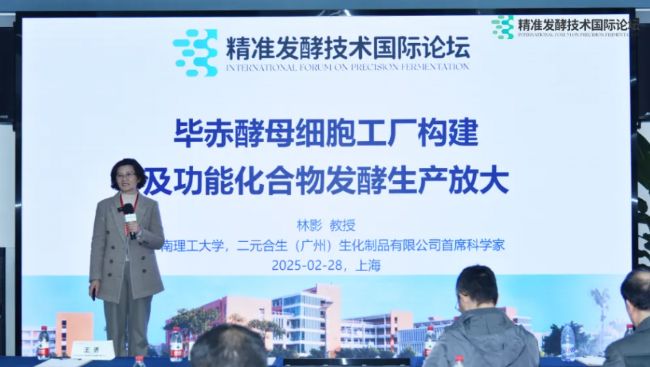 華南理工大學(xué)教授林影系統(tǒng)介紹了畢赤酵母從基礎(chǔ)研究到產(chǎn)業(yè)轉(zhuǎn)化的全鏈條創(chuàng)新,通過(guò)合成生物學(xué)工具開(kāi)發(fā)、多組學(xué)指導(dǎo)的代謝重構(gòu),以及AI和精準(zhǔn)發(fā)酵工藝突破,實(shí)現(xiàn)了膠原蛋白、萜類(lèi)等高附加值產(chǎn)品的快速產(chǎn)業(yè)化。未來(lái)與AI控制的深度整合,有望進(jìn)一步拓展畢赤酵母在碳中和生物制造中的應(yīng)用邊界。