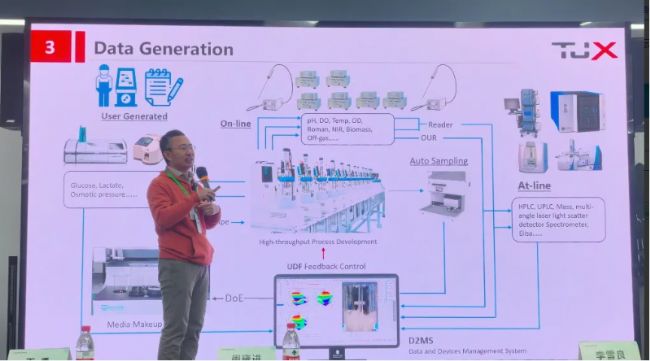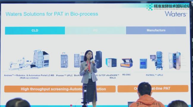 沃特世制藥市場(chǎng)高級(jí)經(jīng)理宋玉玲介紹了過(guò)程分析技術(shù)(PAT)通過(guò)將傳感器、在線分析儀器(如液相色譜)的數(shù)據(jù)傳輸至反應(yīng)器建立自動(dòng)化工作流,通過(guò)生物工藝全鏈條的實(shí)時(shí)數(shù)據(jù)采集、分析、決策,實(shí)現(xiàn)有效的生物工藝控制,為生物工藝優(yōu)化、產(chǎn)品質(zhì)量控制提供了實(shí)時(shí)有效的數(shù)據(jù)支持。