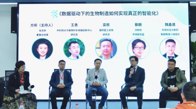 在“數(shù)據(jù)驅(qū)動(dòng)下的生物制造如何實(shí)現(xiàn)真正的智能化”圓桌討論中,鈦資本董事總經(jīng)理方昕、中科院分子植物科學(xué)卓越創(chuàng)新中心研究員王勇、中國(guó)醫(yī)藥工業(yè)研究總院研究員奕棟、沃特世市場(chǎng)總監(jiān)蔡麒、東陽(yáng)光生化制藥智能制造小組組長(zhǎng)魏鑫燏圍繞AI在生物制造中的核心應(yīng)用展開(kāi),重點(diǎn)探討了數(shù)據(jù)驅(qū)動(dòng)的新藥研發(fā)、工藝優(yōu)化及生產(chǎn)智能化轉(zhuǎn)型。討論聚焦AI算法與硬件協(xié)同、經(jīng)驗(yàn)與數(shù)據(jù)混合決策機(jī)制,以及跨領(lǐng)域數(shù)據(jù)標(biāo)準(zhǔn)化難題。嘉賓們對(duì)智能化的未來(lái)進(jìn)行了大膽預(yù)測(cè),包括自動(dòng)迭代工藝優(yōu)化系統(tǒng)、細(xì)胞內(nèi)外雙向交互媒介系統(tǒng)的突破等,嘉賓們對(duì)真正智能化的生物制造充滿期待。