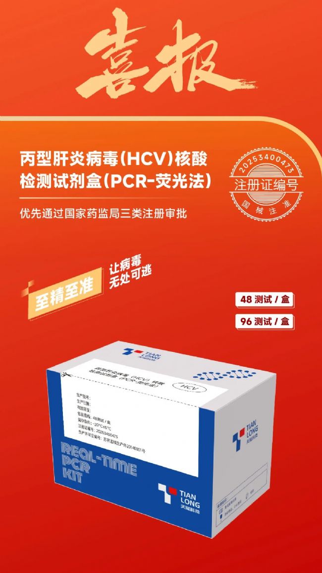 近日,天隆智造家族又添新成員,自主研發的超高敏丙型肝炎病毒(HCV)核酸檢測試劑盒(PCR-熒光法)通過國家藥監局三類注冊!該試劑為天隆科技牽頭承擔的“十四五”國家重點研發計劃的戰略性轉化產品之一,此次為優先通過NMPA審批,獲準上市。