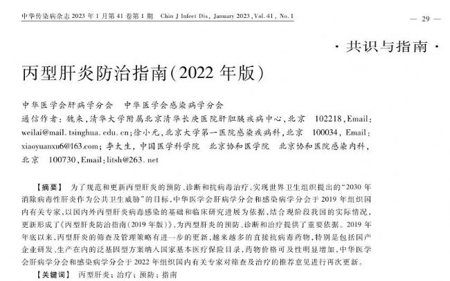 [2] 中華醫學會肝病學分會, 中華醫學會感染病學分會. 丙型肝炎防治指南(2022年版)[J]. 中華傳染病雜志2023, 41(1): 29-46.
