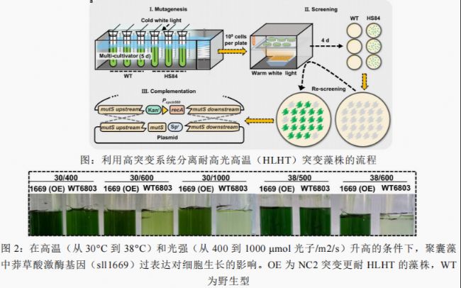 應用案例:通過遺傳和環境協同擾動手段獲得耐高溫高光藍藻突變體