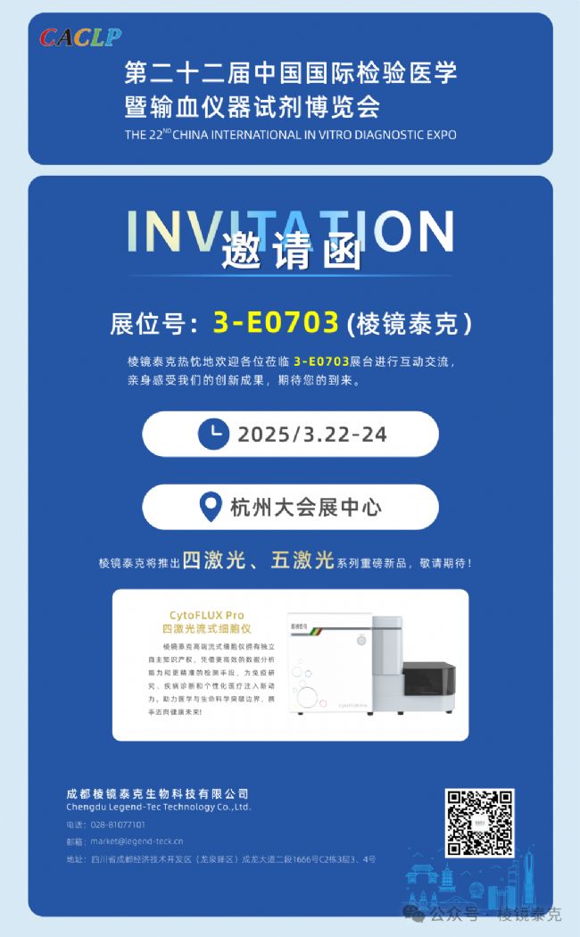 展會邀約!棱鏡泰克首發4激光25色/5激光30色流式細胞儀即將引爆CACLP【黃金展位:3-E0703 】