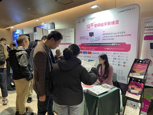 森西賽智科技作為生命科學(xué)工具一站式解決方案服務(wù)商,專注生命科學(xué)儀器領(lǐng)域多年,擁有20多年技術(shù)積累和豐富的產(chǎn)品應(yīng)用案例,森西賽智科技是美國空間組學(xué)品牌Vizgen的中國區(qū)戰(zhàn)略合作伙伴,現(xiàn)場重點展示的MERSCOPE Ultra™“大視野超高分辨單細胞原位空間組學(xué)分析系統(tǒng)”和MERFISH 2.0空轉(zhuǎn)技術(shù),吸引了眾多觀展嘉賓前來交流咨詢。