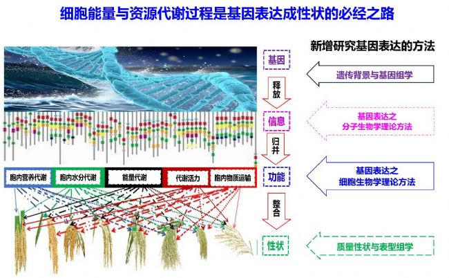 也就是說,能量與資源持續在植物不同組織之間的流動是植物生理過程的重要組成部分(圖二),這個意義上講,細胞能量與資源代謝過程是植物基因池的基因表達成性狀的必經之路(圖三)。