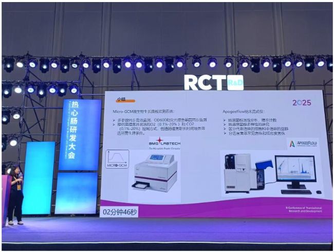 講演圍繞腸道微生物研究中的關鍵技術難題,結合 Micro-GCM 微生物生長曲線監測系統的實時動態監測優勢,為研究人員提供可靠的實驗數據支持。同時,針對納米流式菌群分析與分選應用,深入講解了 ApogeeFlow 超靈敏納米流式分析分選儀在腸道微生物快速分析、腸道微生物群高精度分選方面的獨特技術,展示了其在腸道微生物分析、分選等場景下的出色表現。此次講演不僅為參會者帶來了技術啟發,也進一步加深了行業對Bio-Gene公司產品的了解與認可。