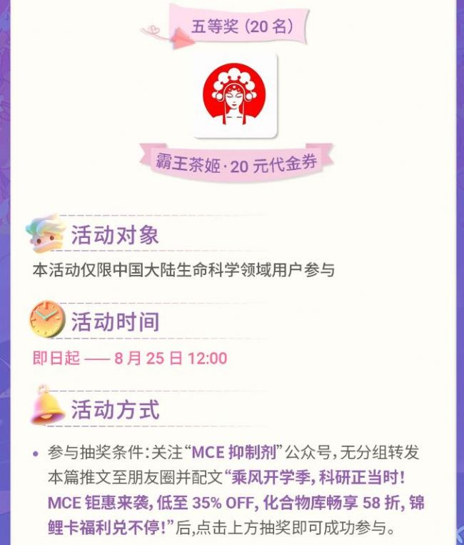 MCE開學鉅惠:低至35%OFF,化合物庫暢享58折