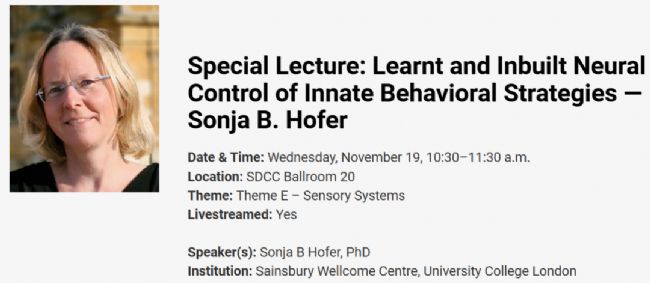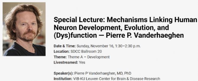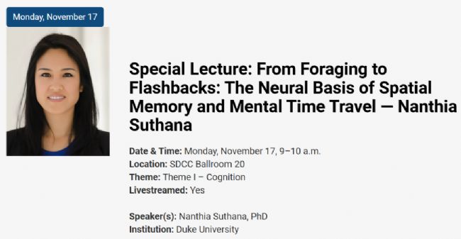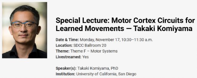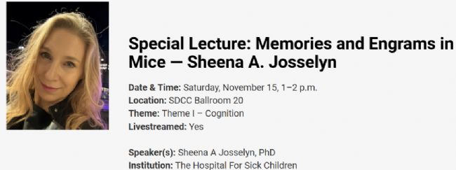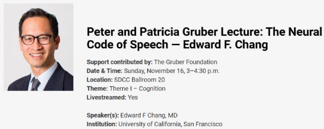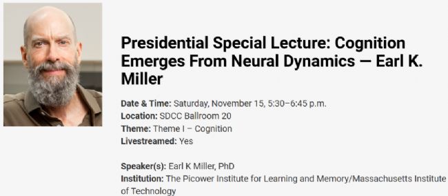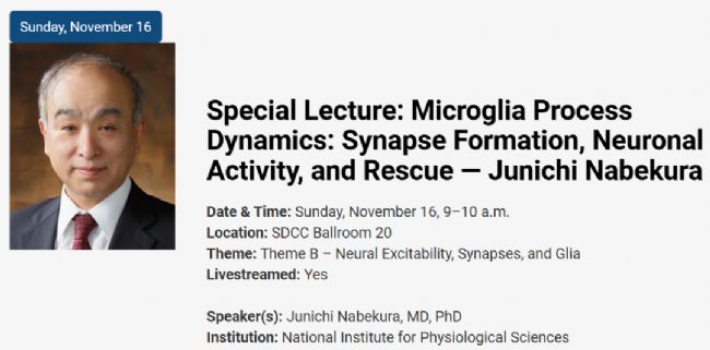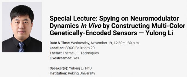 每年,神經科學學會項目委員會都會邀請頂尖科學家就神經科學領域的關鍵議題進行講座。講座將于11月15日至19日在圣地亞哥會議中心20號宴會廳舉行。部分講座將從圣地亞哥會議中心進行實時直播,會議結束后約一個月內還可觀看點播錄像。2025神經科學年會期間的講座安排如下,其中為11月19日12:30-13:30為來自中國的學者——北京大學李毓龍教授的報告,感興趣的老師同學們可以重點關注一下!
