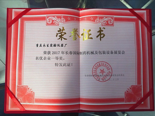 永生儀器參加了在長春國際會展中心舉行的第10屆中國長春國際制藥機械及包裝設備展覽會,并榮獲了2017年長春國際制藥機械及包裝設備展覽會名優企業一等獎。