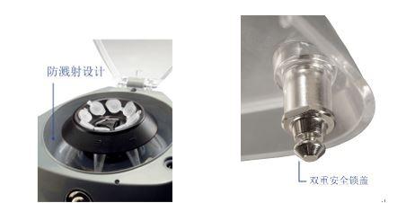 此外,新款在設計上也有小小心機。采用的防濺射設計能夠有效防止離心樣品濺出;配備的創新雙重安全鎖蓋,能在離心操作時會鎖定離心機蓋,避免您在操作時因誤開蓋而受到傷害。