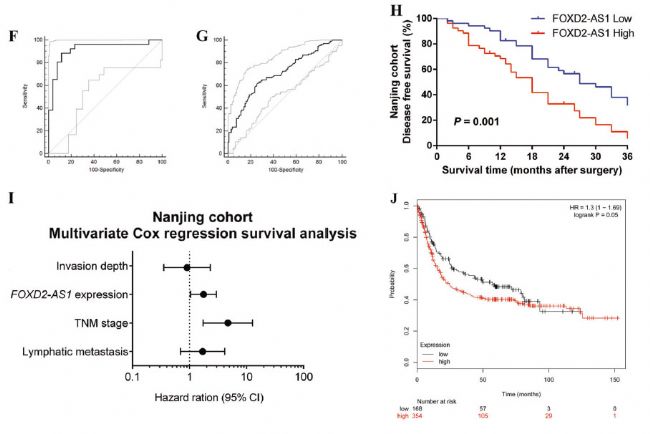 2. GC細胞中FOXD2-AS1富集高的患者預后較差
