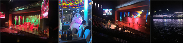 街頭的霓虹燈亮起,商場門口的彩燈閃爍,美食夜市人頭聳動,動感的音樂向游客傳遞著自己的風情萬種。一些商店在重點位置掛放著晚上各大劇院的門票信息,不同的演出內容吸引獵奇的觀眾…………