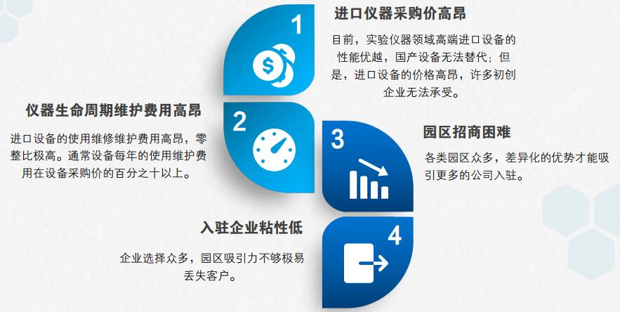 與園區共建共享實驗室,降低初創生物企業起步門檻,用最低的費用使用上一流的進口設備;增加園區招商入駐率。