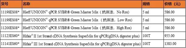 qPCR 熒光定量試劑盒(CAT#11198)是基于抗體法熱啟動Taq酶的預混液產品。該酶可以有效抑制引物非特異性退火導致的擴增。同時,配方優化了有效抑制非特異性PCR擴增的因子和提升PCR反應擴增效率的因子,適合低濃度模板的擴增,使定量PCR可以在寬廣的定量區域內獲得良好的標準曲線。